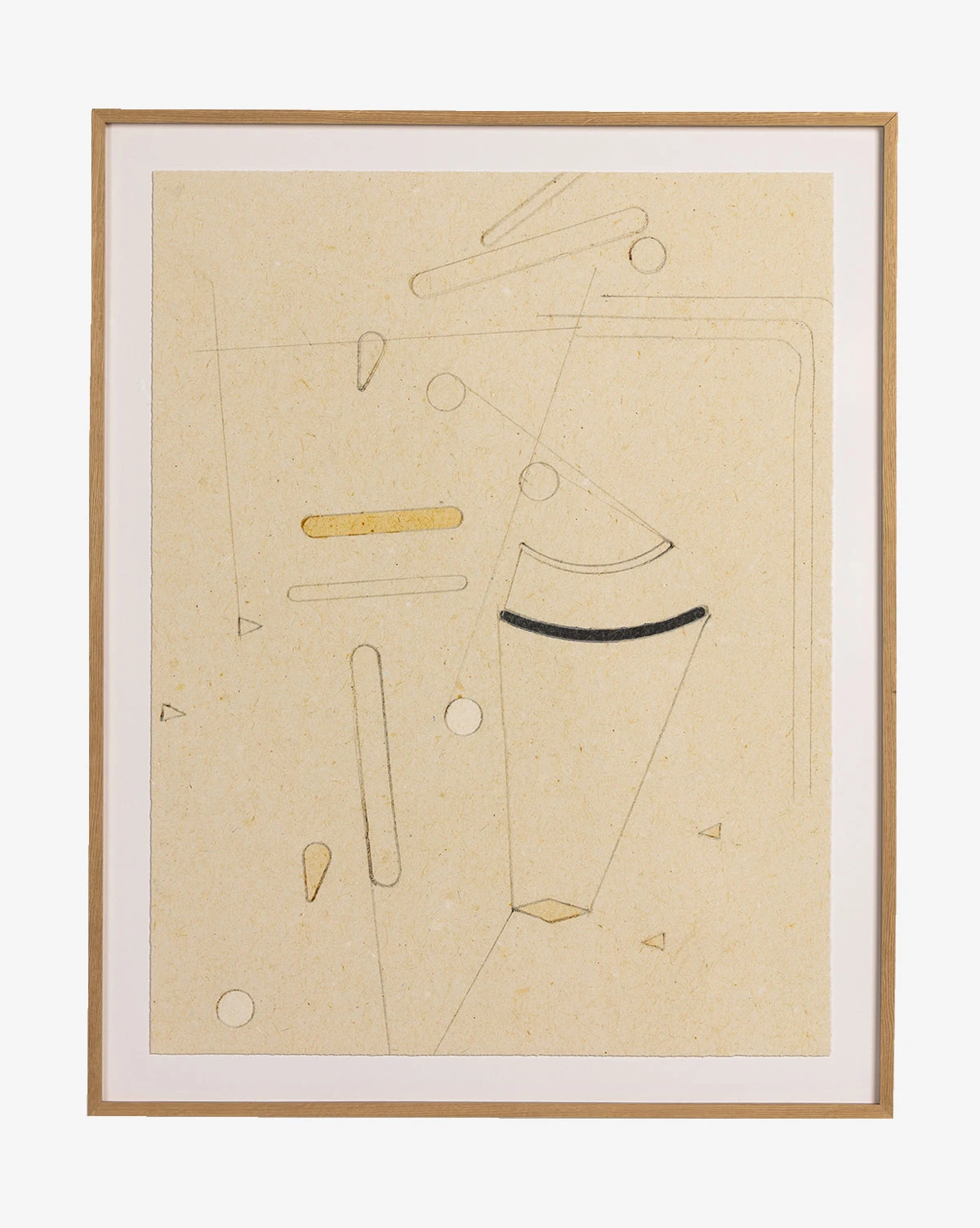 Composed of abstract shapes and strokes within a neutral palette, Abstract Angles is inspired by artist Dan Hobday’s hometown landscapes in Devon, England. Printed on fine art paper with a deckled edge and a white oak frame, the artwork brings a gallery-quality to your spaces.