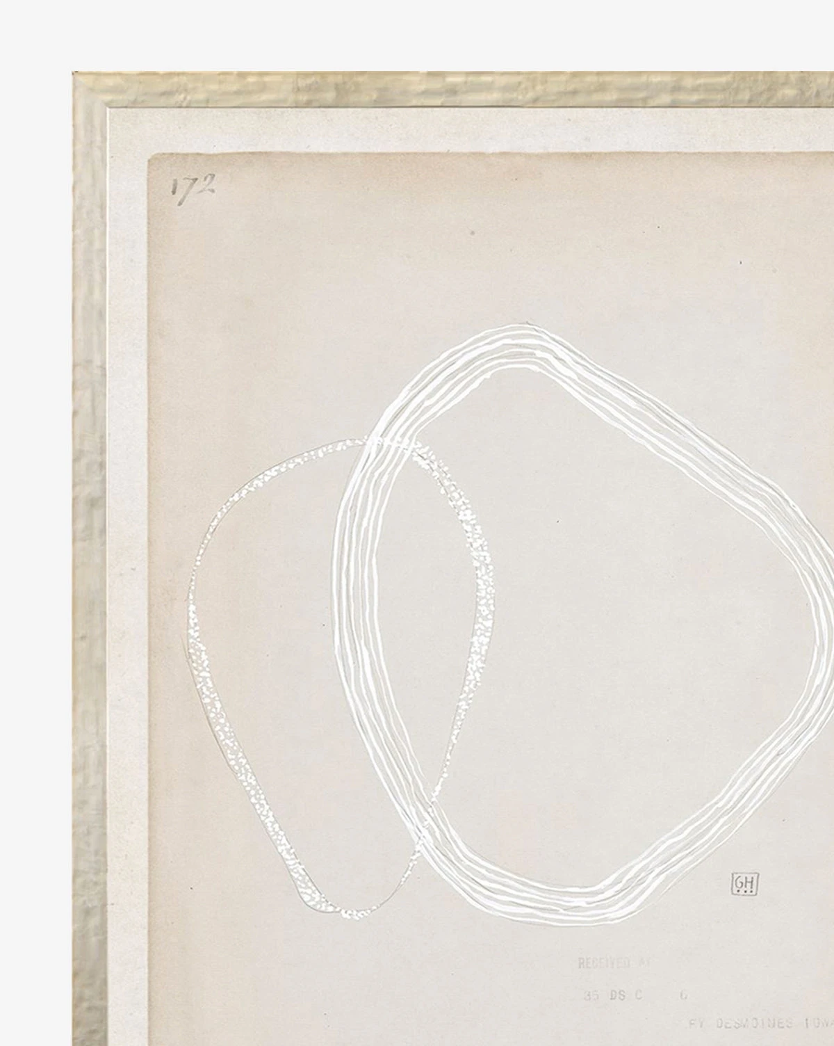 Beige Abstract uses a calming tone-on-tone palette to play with intriguing shapes and energetic strokes of white paint and pencil. Both this and its sister piece, are rendered on restoration paper for added depth and interest.