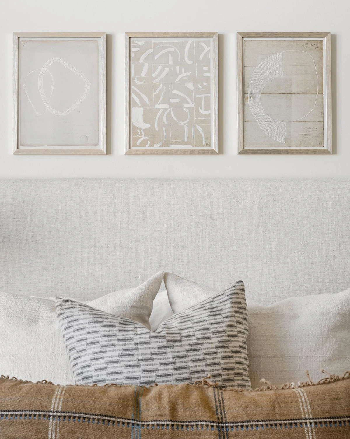Visually intriguing, each piece in our Beige Abstract Collection is created on restoration paper for added depth and interest. White paint and pencil generate unique shapes and flowing designs, lending a soft, romantic feel to your space. Each piece brings added dimension styled alone or within a gallery wall.