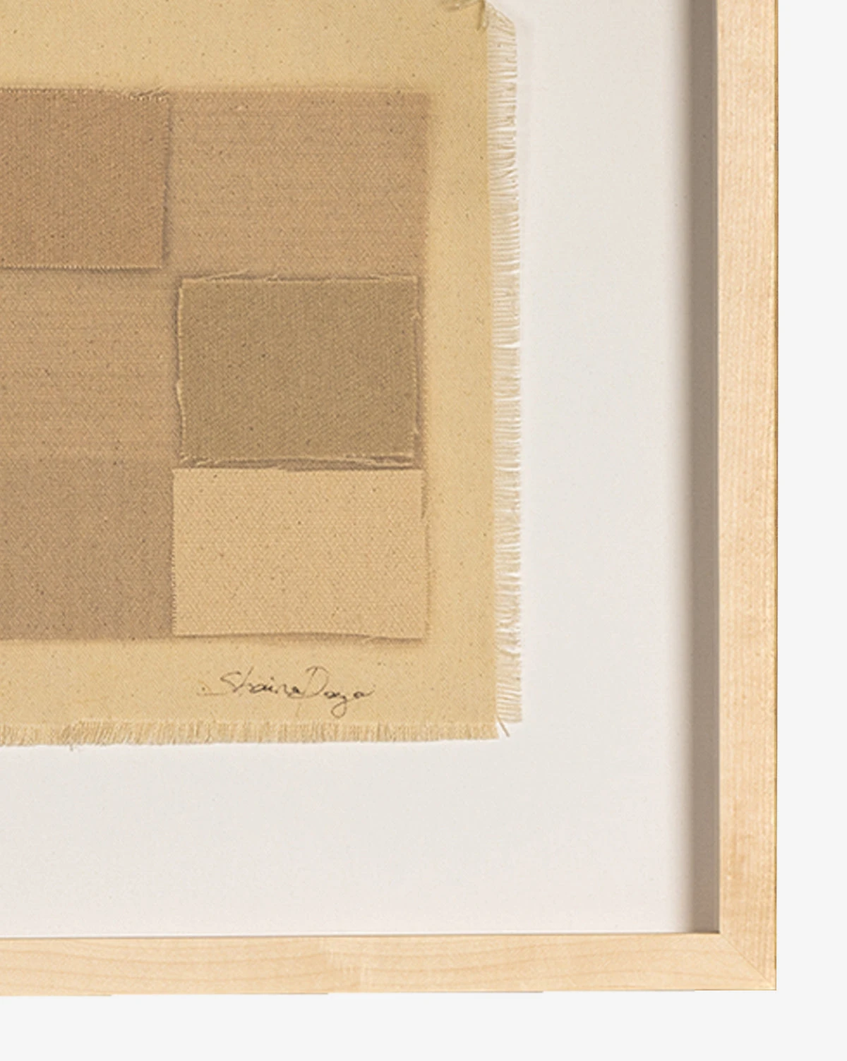 Neutral and dimensional, Beige Checkered Print is a textural art piece presented on raw canvas with a stringed edge. Displayed within a natural American maple frame, the artwork brings museum-quality materials to your decor.