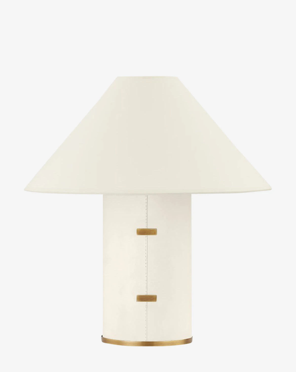 From its contemporary build to its textured body, the Bond Table Lamp adds a modern refresh to any space. The parchment-wrapped body features stitch detailing and clasp-like patina brass accents to add dimension to its tapered paper shade.