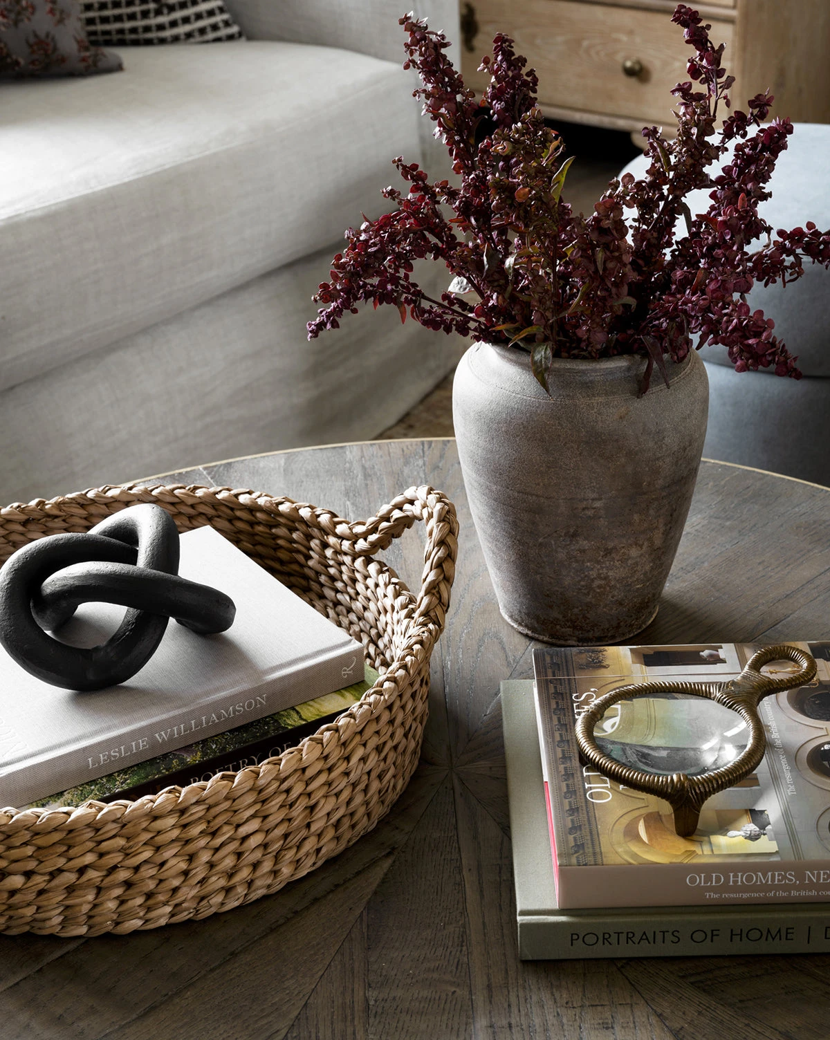 With an abundance of antique character, the Brass Enrouler gives maturity and dimension to built-ins and decorative vignettes. Crafted from brass, this three-footed design is fitted with a glass center and metal loop extending off the end, adding an element of aged style to the space.