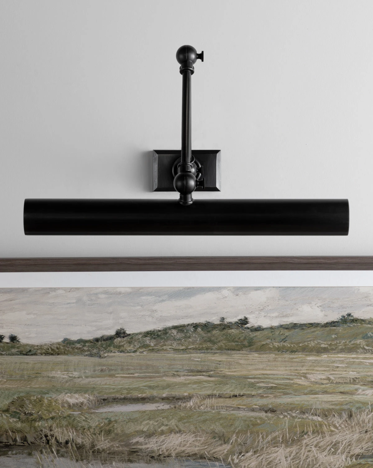 Giving subtle detailing to a traditional library light, the Cabinet Maker 18” Double Library Light gives added function to its beautiful form. In a variety of finishes that each bring a touch of warmth to this industrial design, this piece blends seamlessly into a variety of designs and styles.