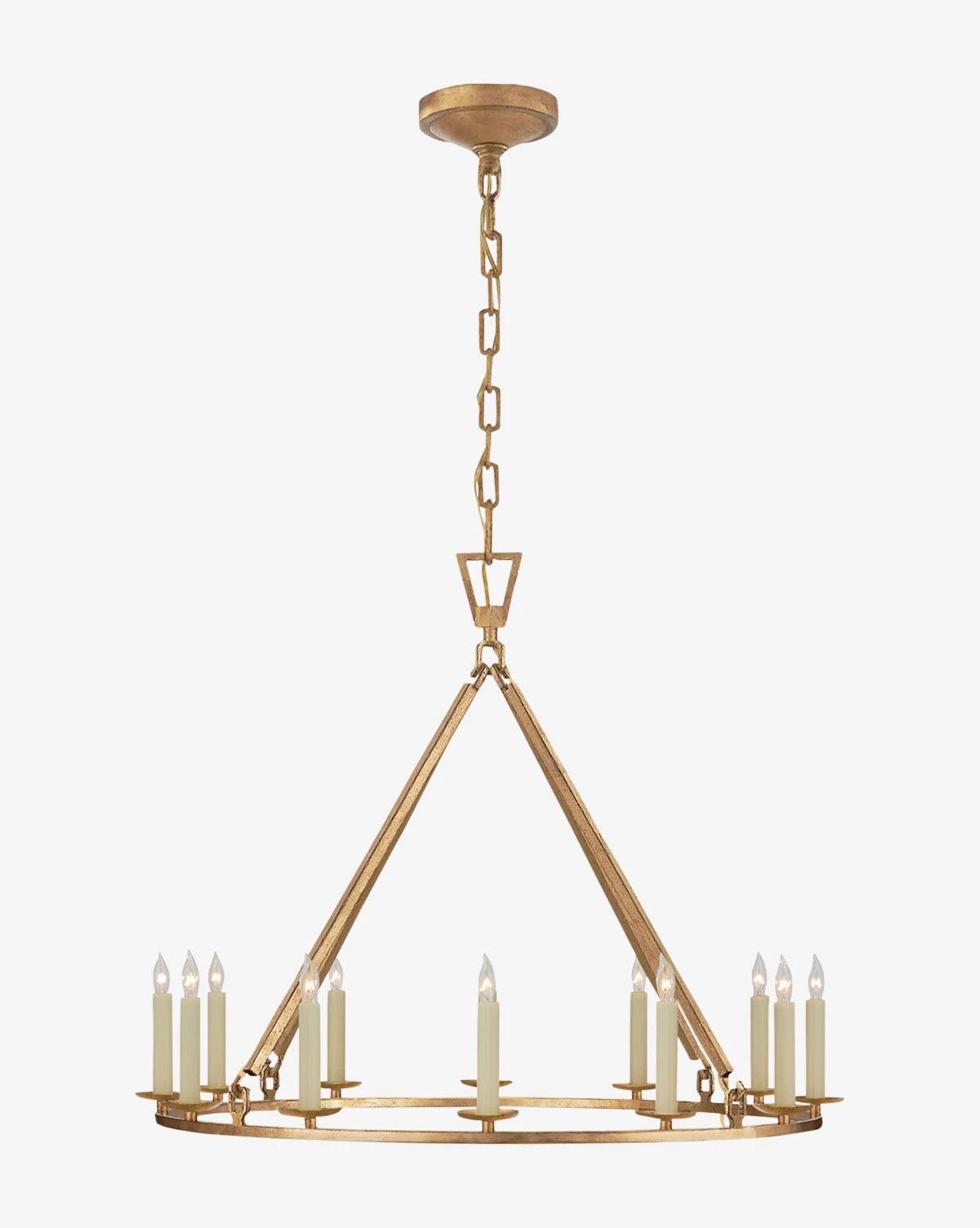The Darlana Single Ring Chandelier is inspired by the traditional chandelier but given a modern update. Sleek lines and an open frame holding candelabra lights make for a contemporary pendant for the entryway, dining, or kitchen area.