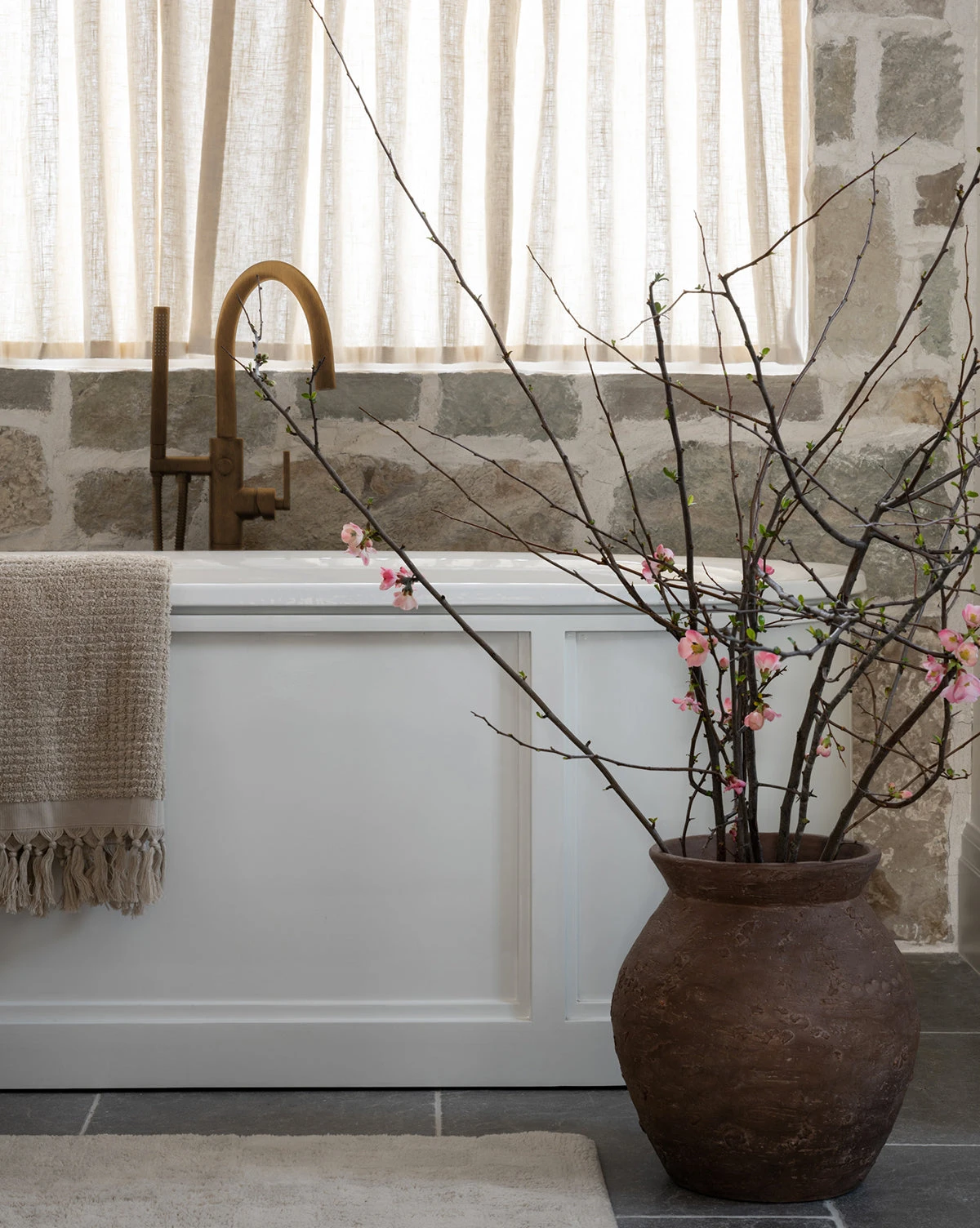 With an antiqued texture, the Demetria Terracotta Vase has a distinctive rustic feel that shows off its material. The vase is hand thrown with terracotta clay and hand painted with a water base paint that highlights its earthy tones. With intriguing detail, the terracotta vase is a classic addition to a console or shelving display.