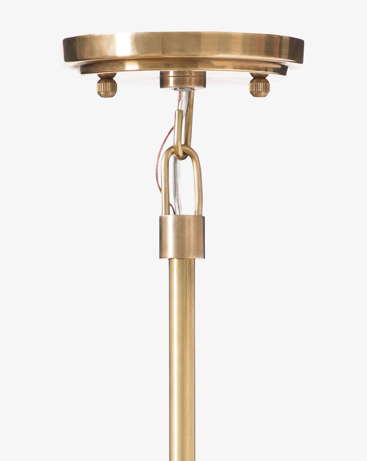 In a simple palette, the thoughtful mix of materials in our Didier Ceramic Pendant gives it a unique beauty. The ceramic shade holding the large clear bulb allows for warm light, while the antique brass hardware brings a sophisticated detail to your space.