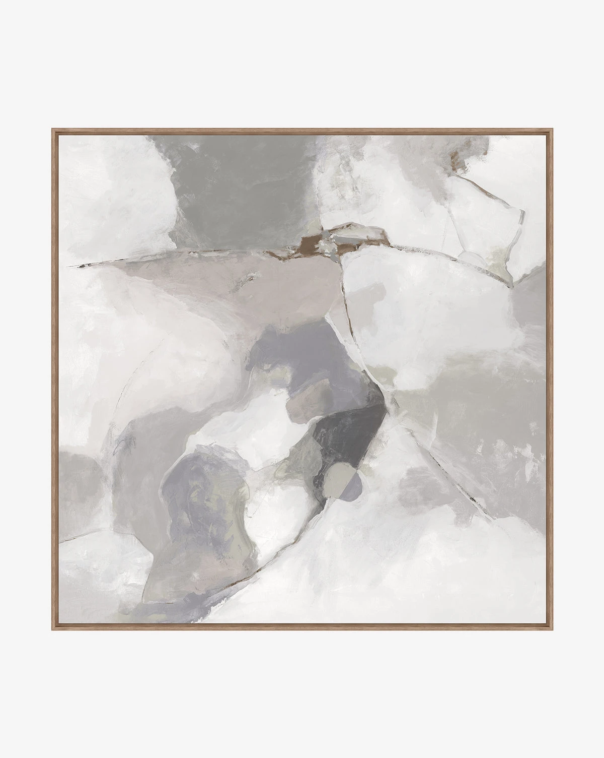 With a dramatic composition, Fractured I takes inspiration from nature, using a calming cool and neutral palette. Framed within natural wood, the piece elevates your decor with its details and museum-quality materials. Â