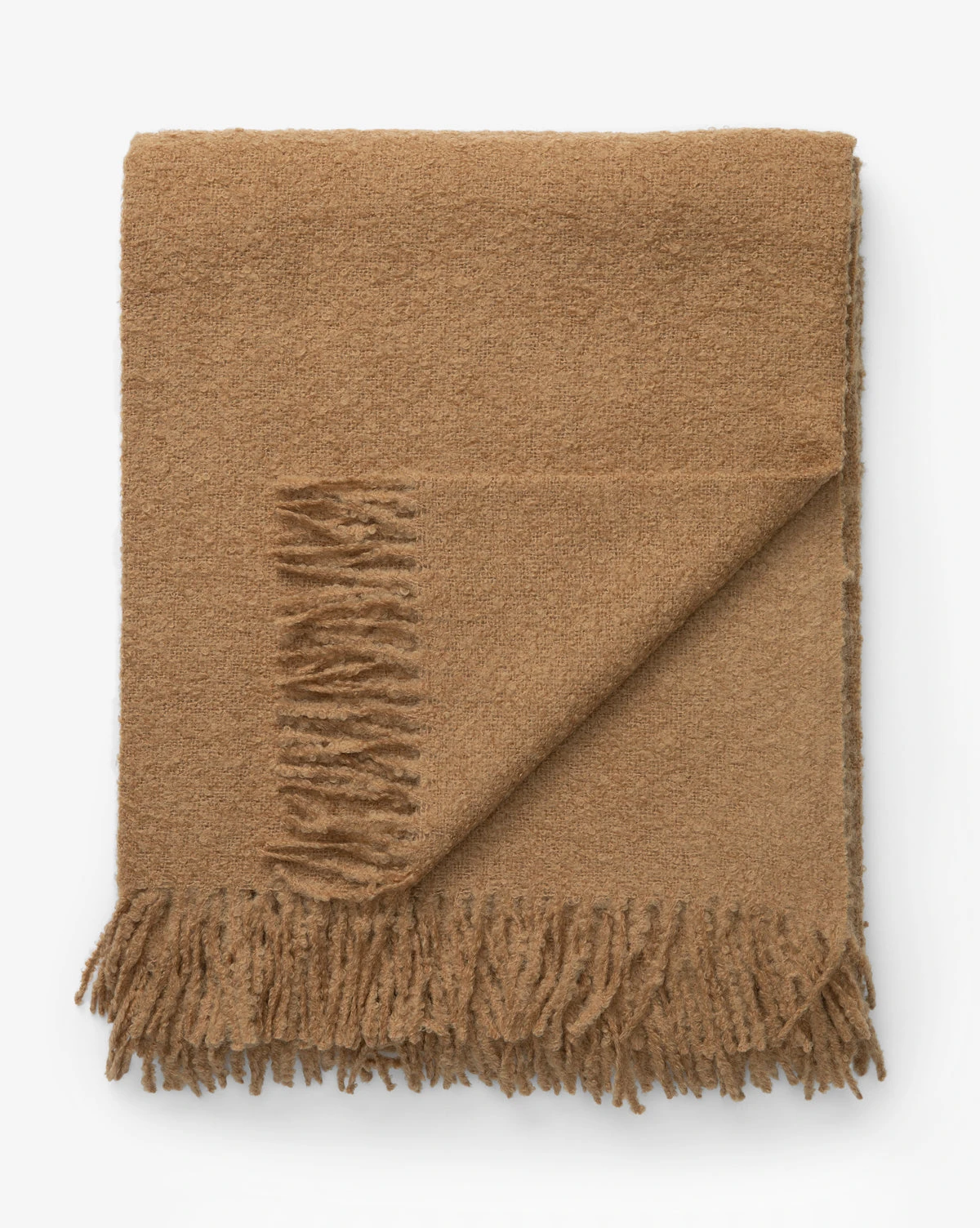 The Hadlee Boucle Throw is warm and inviting, made from 100% Alpaca fibers. With a soft boucle texture, the throw adds character to your bedding or sofa, easily layering with other textiles. Its rich tan hue brings a welcome depth to your space, creating a feeling of welcoming comfort wherever it is styled.
