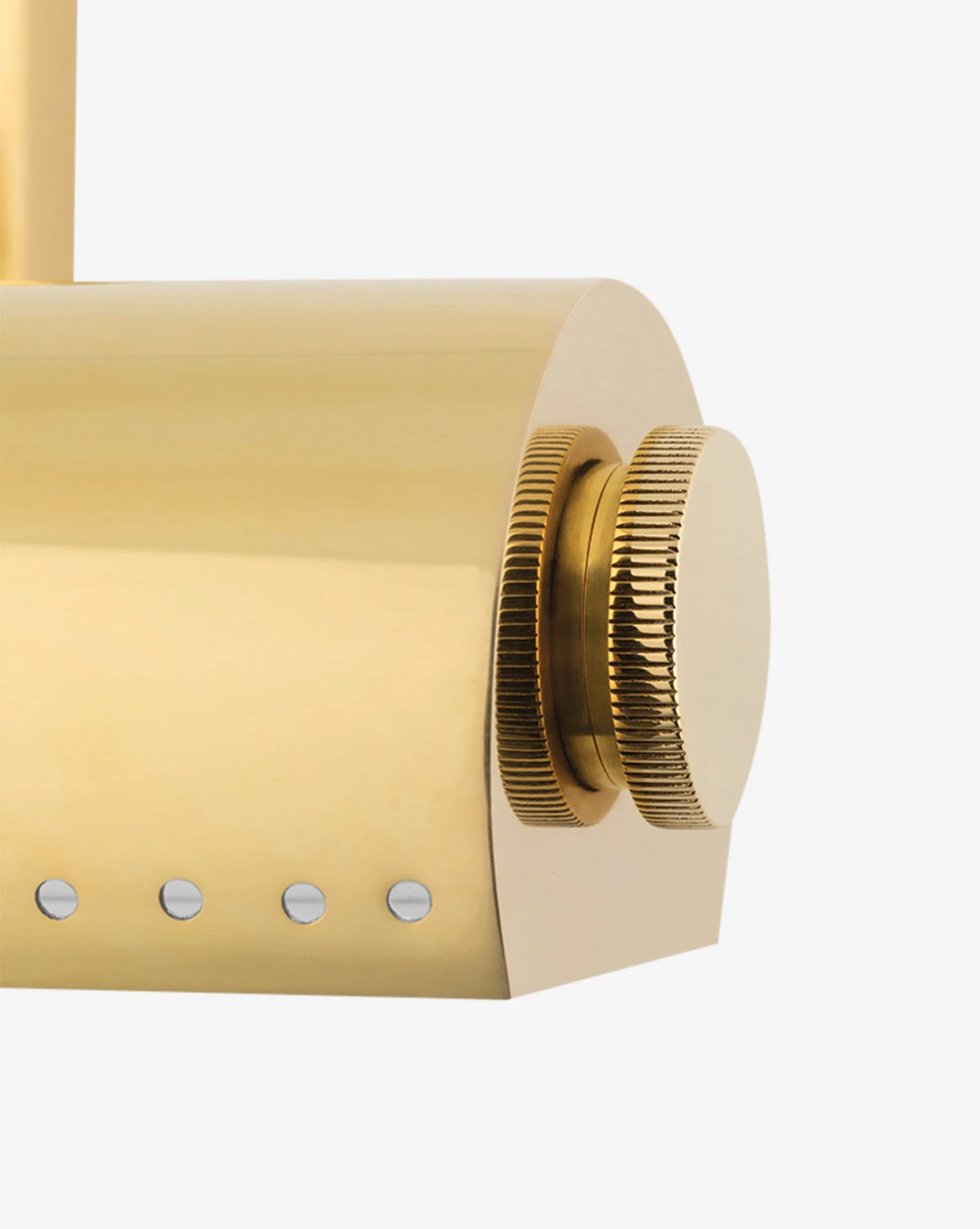 Inspired by the iconic banker’s lamp, the Hampshire Picture Light reinvents a traditional style with a bold brass finish. With a perforated trim on its tubular metal shade, the Hampshire Picture Light is complete with decorative joints that contribute to its subtle detail.
