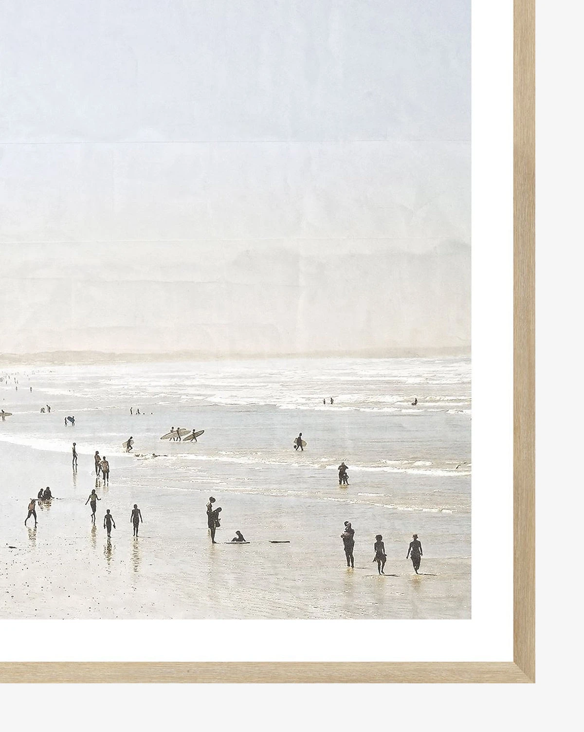 Depicting a warm summer’s day, sandy beaches and calm waves bring serenity into your space. Coastal, but transitional enough to work in any space, this piece is finished with a simple wooden frame in complementing sand-colored tones.