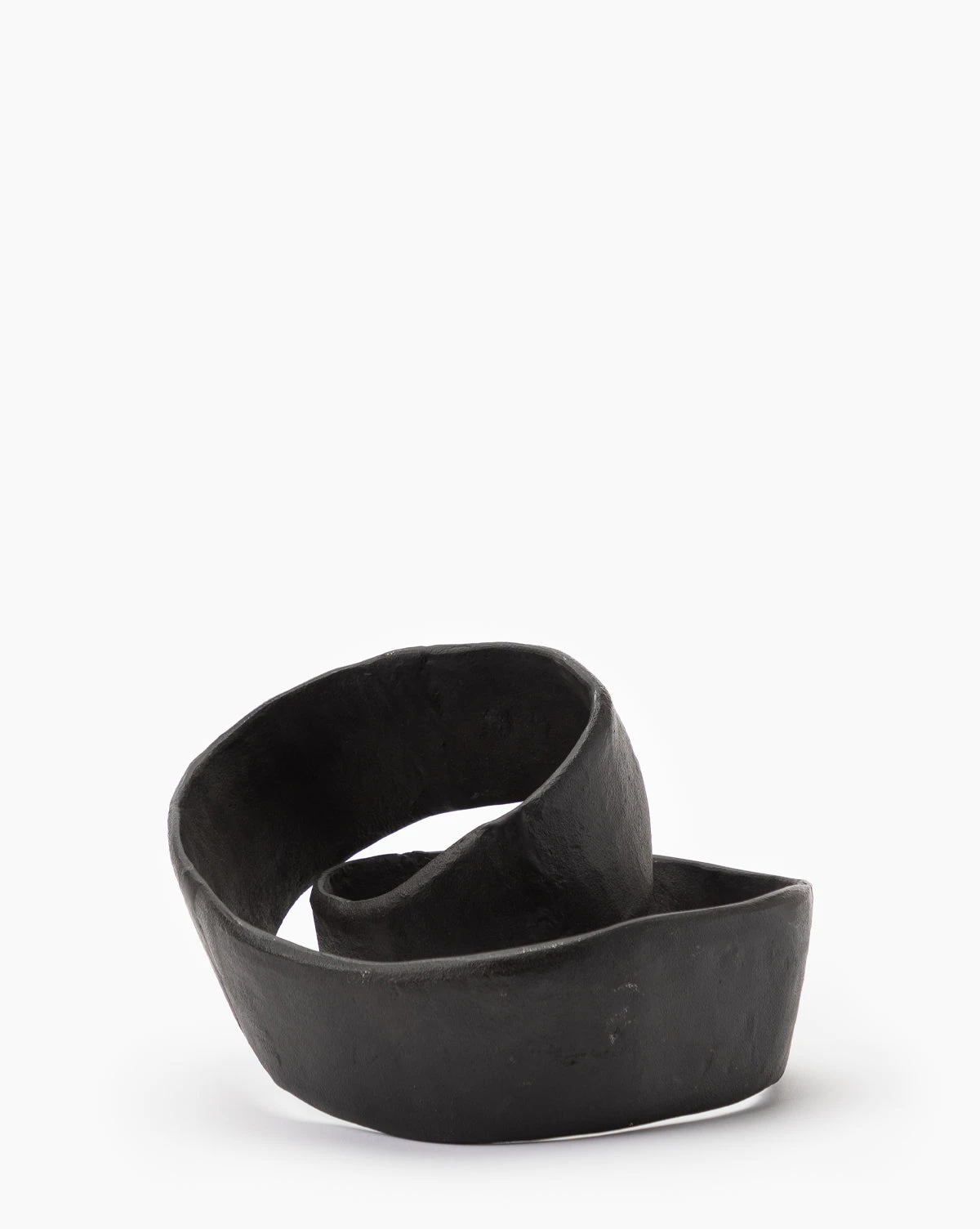 Entirely sculptural, the Industrial Weave Object is abstract and interesting. With a dark black tone, this unique decorative piece can add visual intrigue and volume to open shelving or built-ins.
