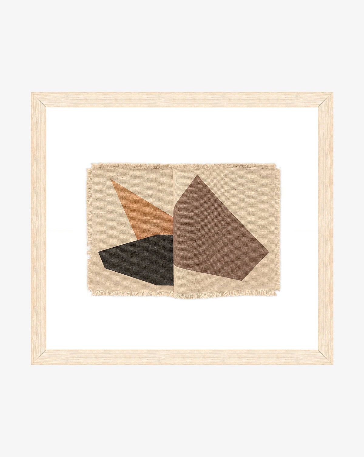 Insight II uses layers of texture and contrast in tone to create a bold abstract piece. With a warm palette and unique materials, the piece is framed in natural wood, bringing a museum-quality feel to your spaces.