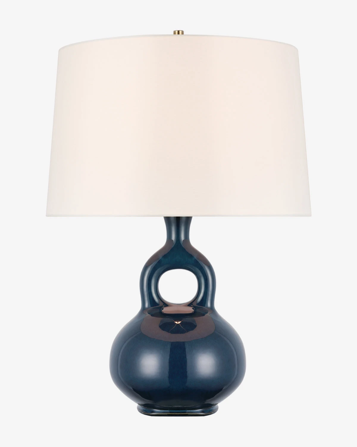 An abstract modern base brings a sculptural element to your space with the Lamu Table Lamp. Crafted from glazed ceramic in either a mixed blue and brown or an ivory finish, the wide linen shade complements the intricate structure of the lamp and provides a functional accent piece for a console or side table.