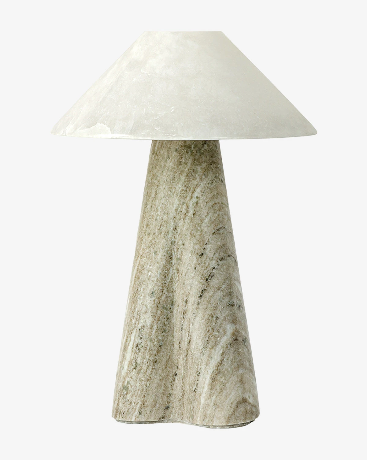 A shapely base brings a sculptural element to your space with the Lydia Table Lamp. Crafted from marble in a natural beige hue, the white alabaster shade provides a stunning mix of materials and complementary tones.