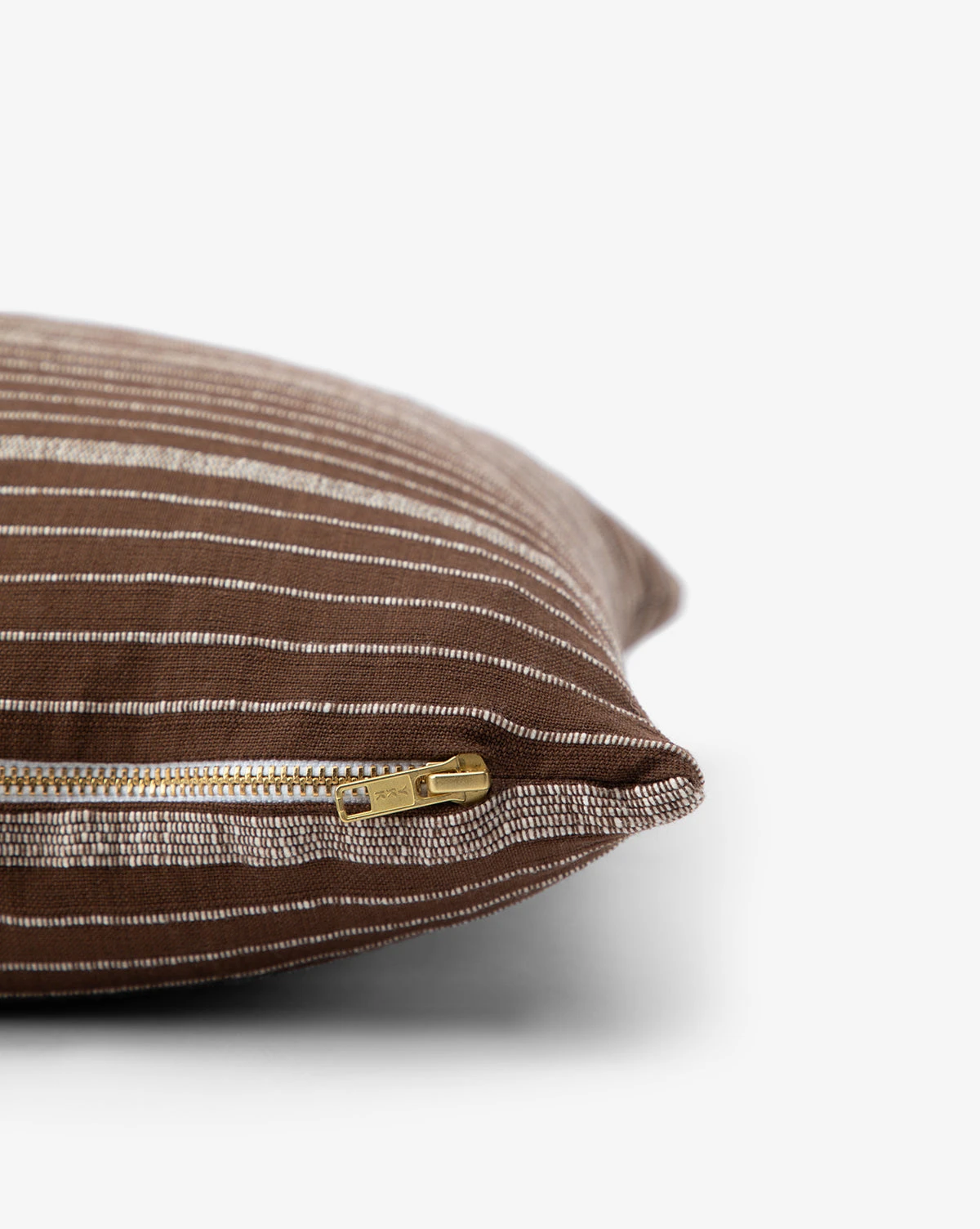 In a rich, chocolate hue, the Mabyn Pillow Cover has an intriguing yet simple striped pattern, bringing subtle detail to your pillow vignettes. Made from 100% cotton, this double-sided pillow cover is part of a curated designer collection, adding an elevated and artistic feel to your decor.