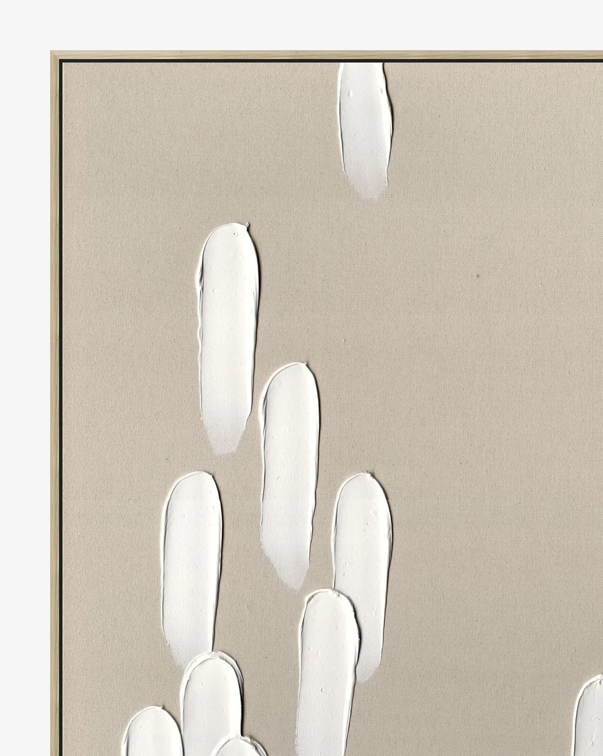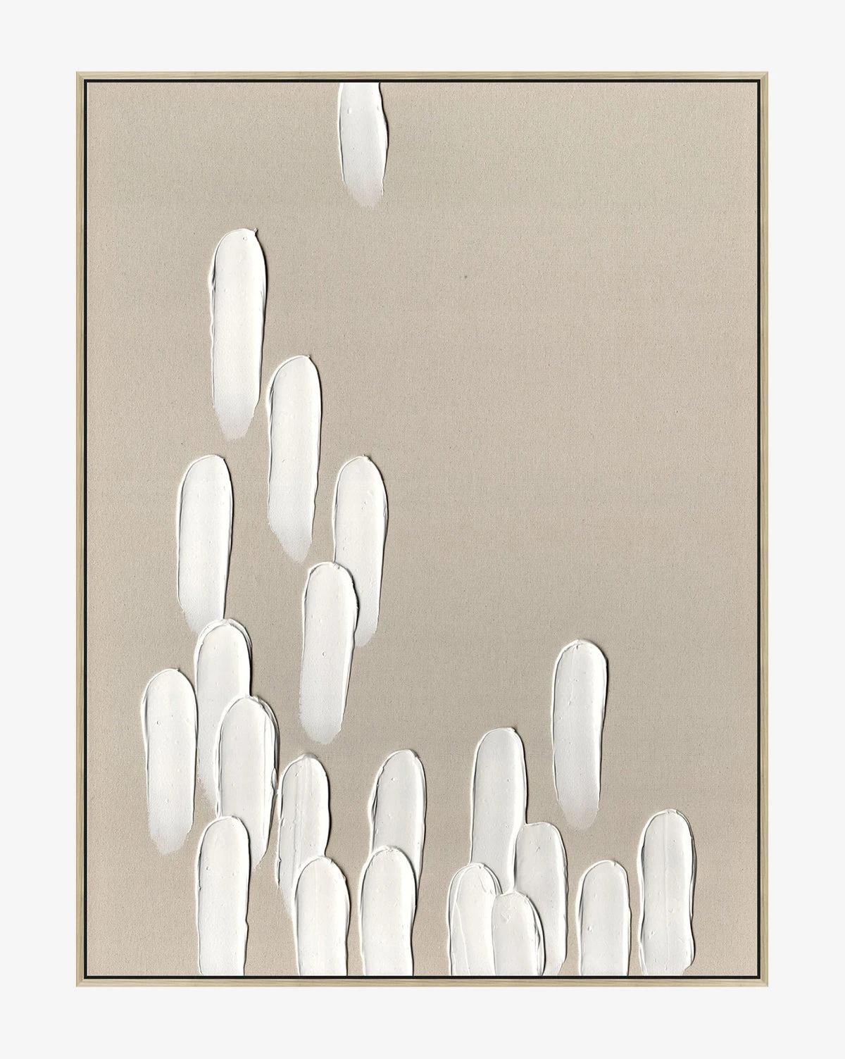 Hand-painted and fitted in a natural woodgrain frame, Neutral Cascade II brings dimension to your space within a simple neutral palette. This piece draws the eye with its unique brushstrokes on the raw canvas.