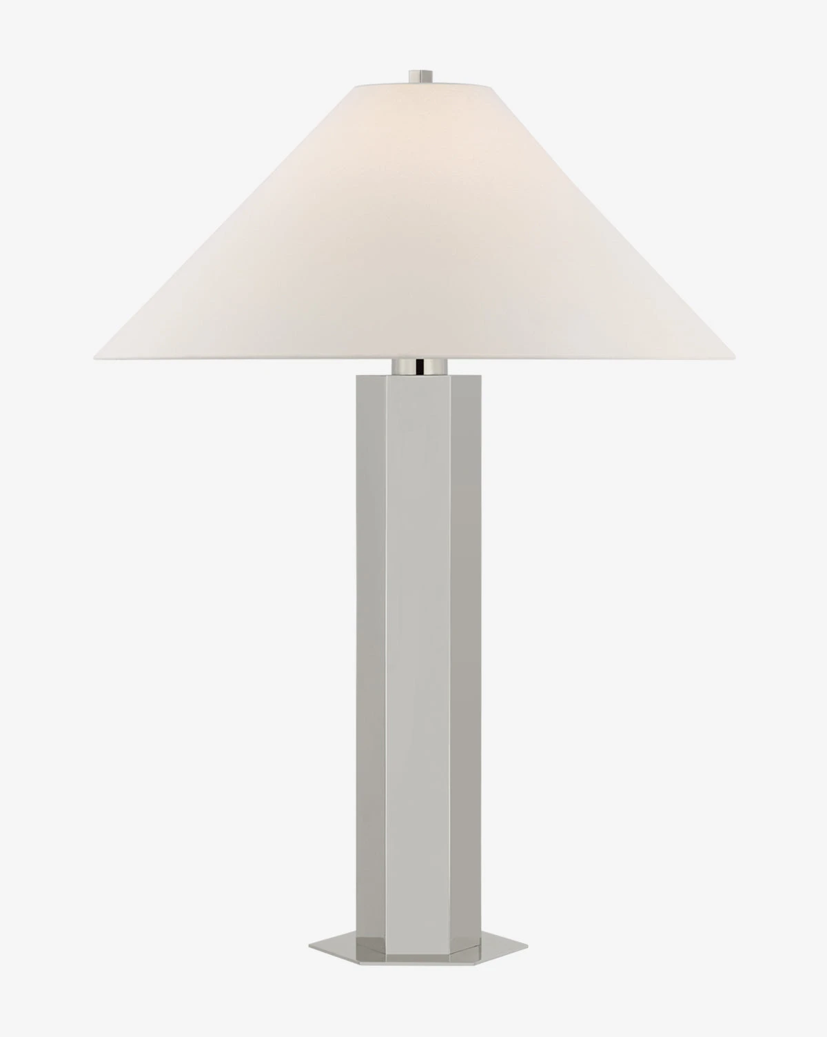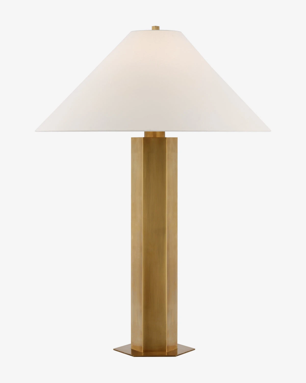 The Olivier Table Lamp brings elegant and sleek illumination into your space. The shapely base and either polished nickel or hand-rubbed antique brass finish combine to create a modern and understated piece.