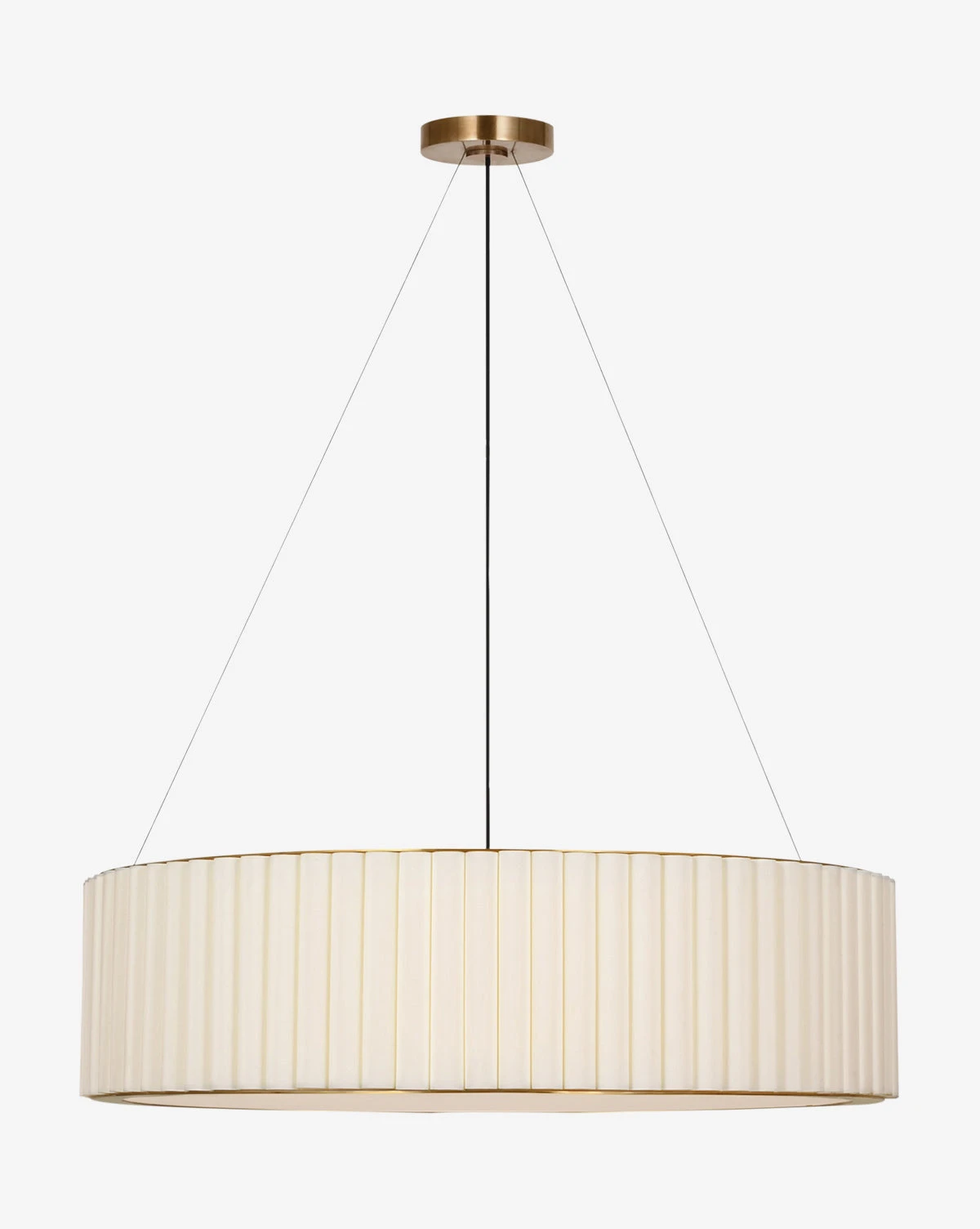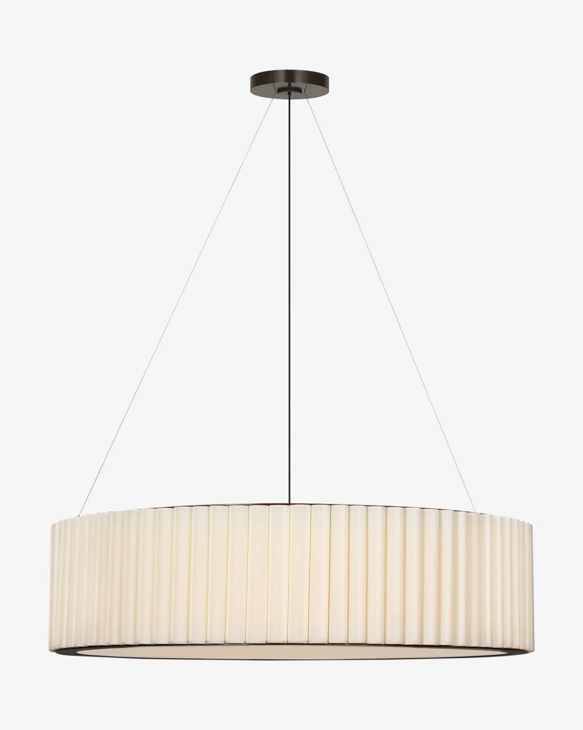 Modern and striking, the Palati Extra Large Hanging Shade is crafted from linen with a metal structure in three stunning finishes. Its round shade is pleated, creating an approachable and textural feel, lending warm light to your dining or great room.