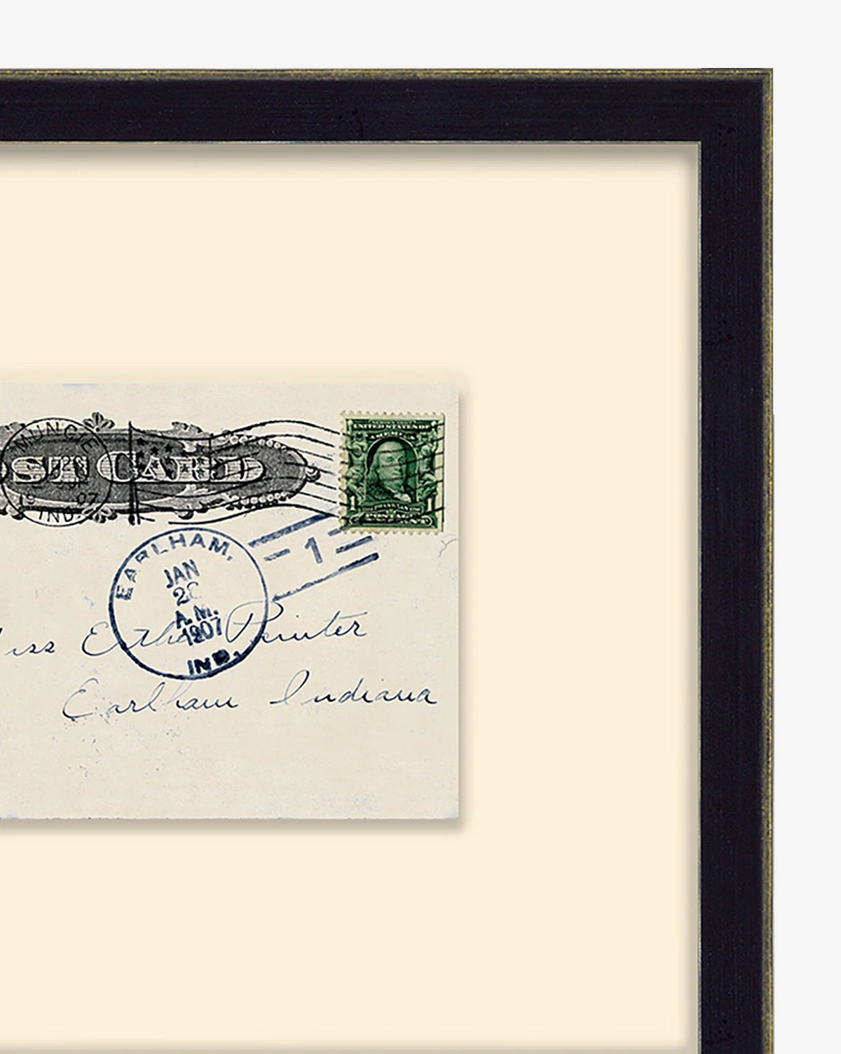 With the charming details of a vintage artifact, Postcard brings authentic detail and whimsy to your spaces. The piece is crafted with gallery-quality materials, featuring a giclee print on matte paper within a distressed black wood frame.
