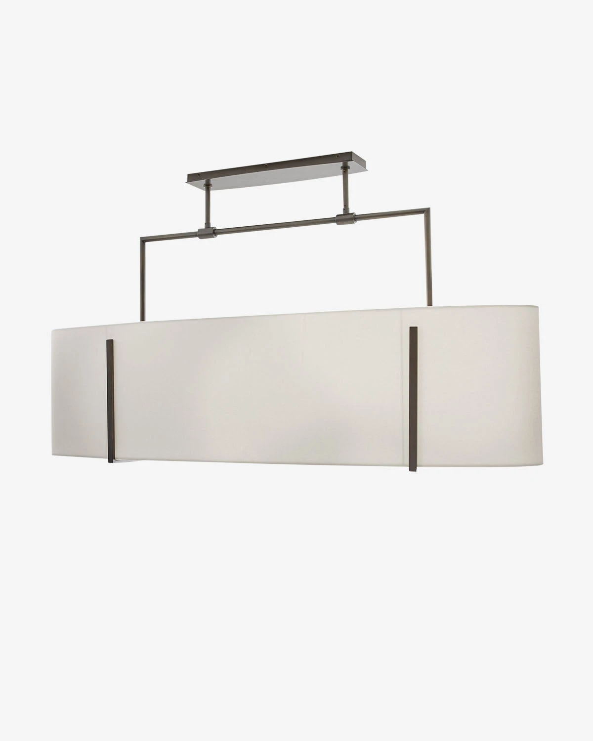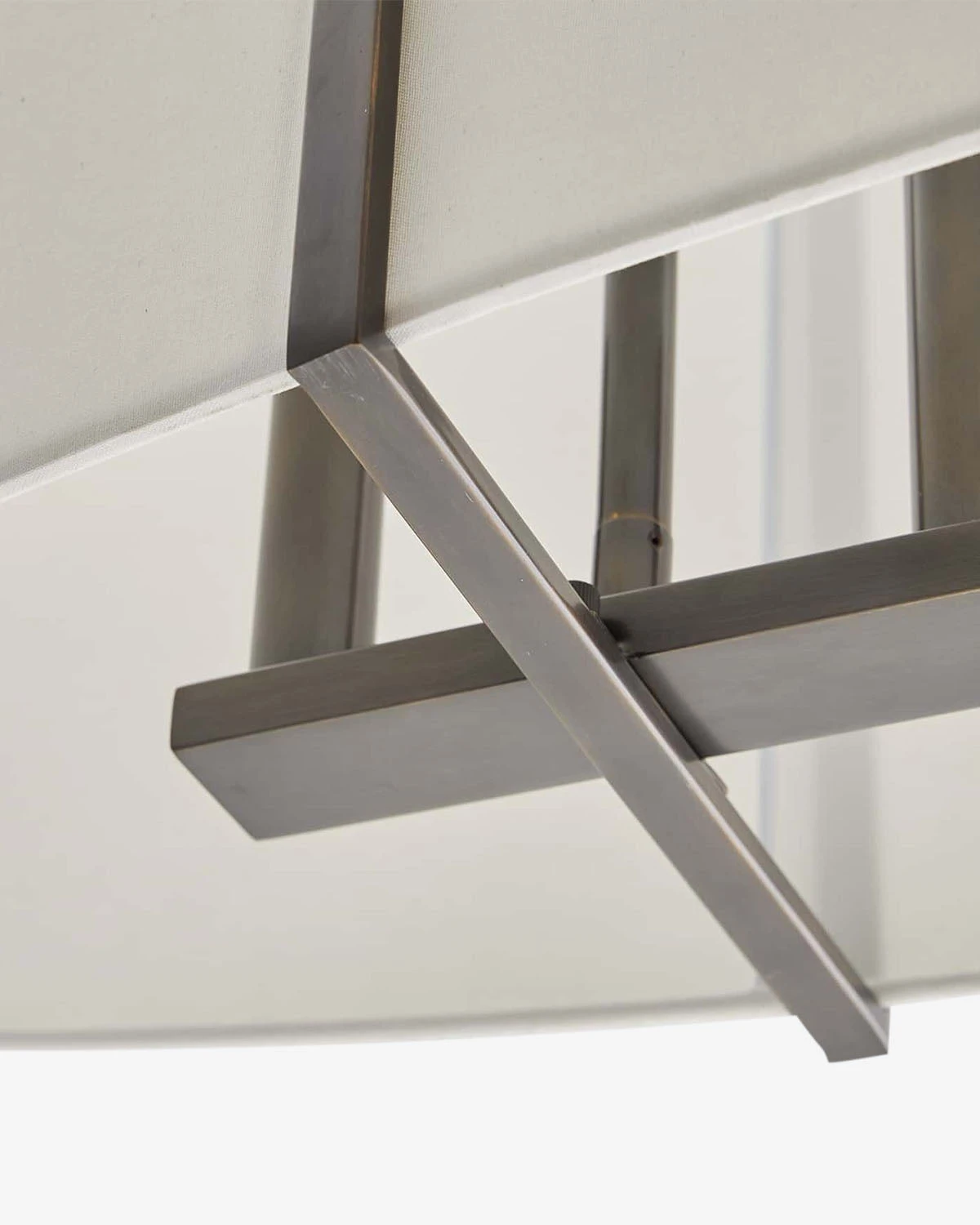 The Presley Chandelier uses simple and contemporary design elements to create a beautifully refined piece. Suspended from a geometric steel structure, the round white linen shade is pronounced, bringing warm light to your space with a unique silhouette.