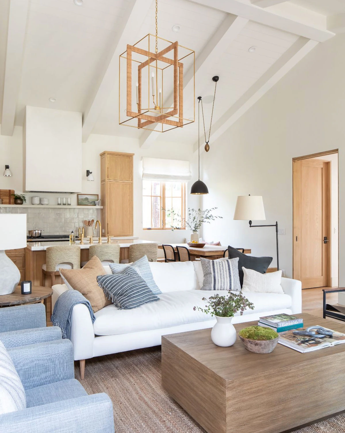 The Purebred Chandelier makes a statement with its contrasting gold leaf and abaca wrapped frame. Traditional and contemporary style combine in this fixture, as boxy shapes surround its delicate candelabra.