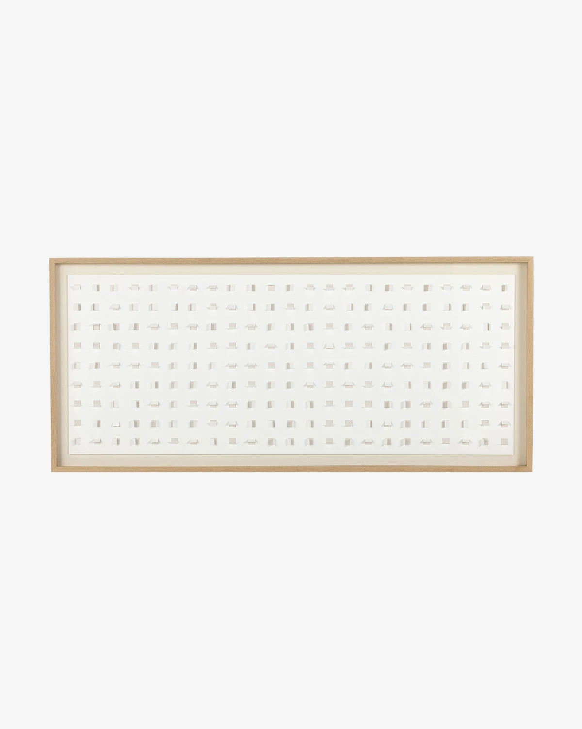 Uniquely contemporary, Sandy Dimensions is an art piece created with intentionally placed paper cutouts that create moments of color and texture. Displayed in a vertical grain white oak frame, Sandy Dimensions brings a touch of modernism and texture to your walls.