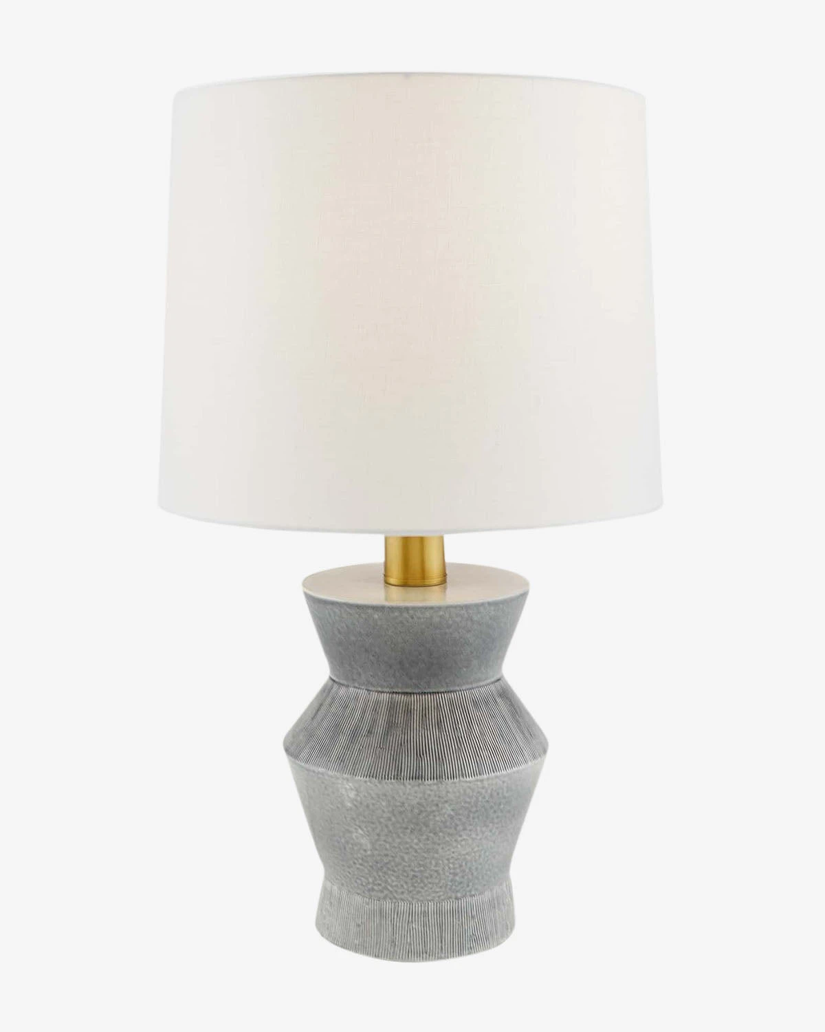 Refined and sculptural, the Seabrooke Lamp is made from beautiful porcelain with a light blue reactive finish. Its tapered shape adds dimension to the simple white linen shade, while the texture in the finish brings unique detail to your decor.