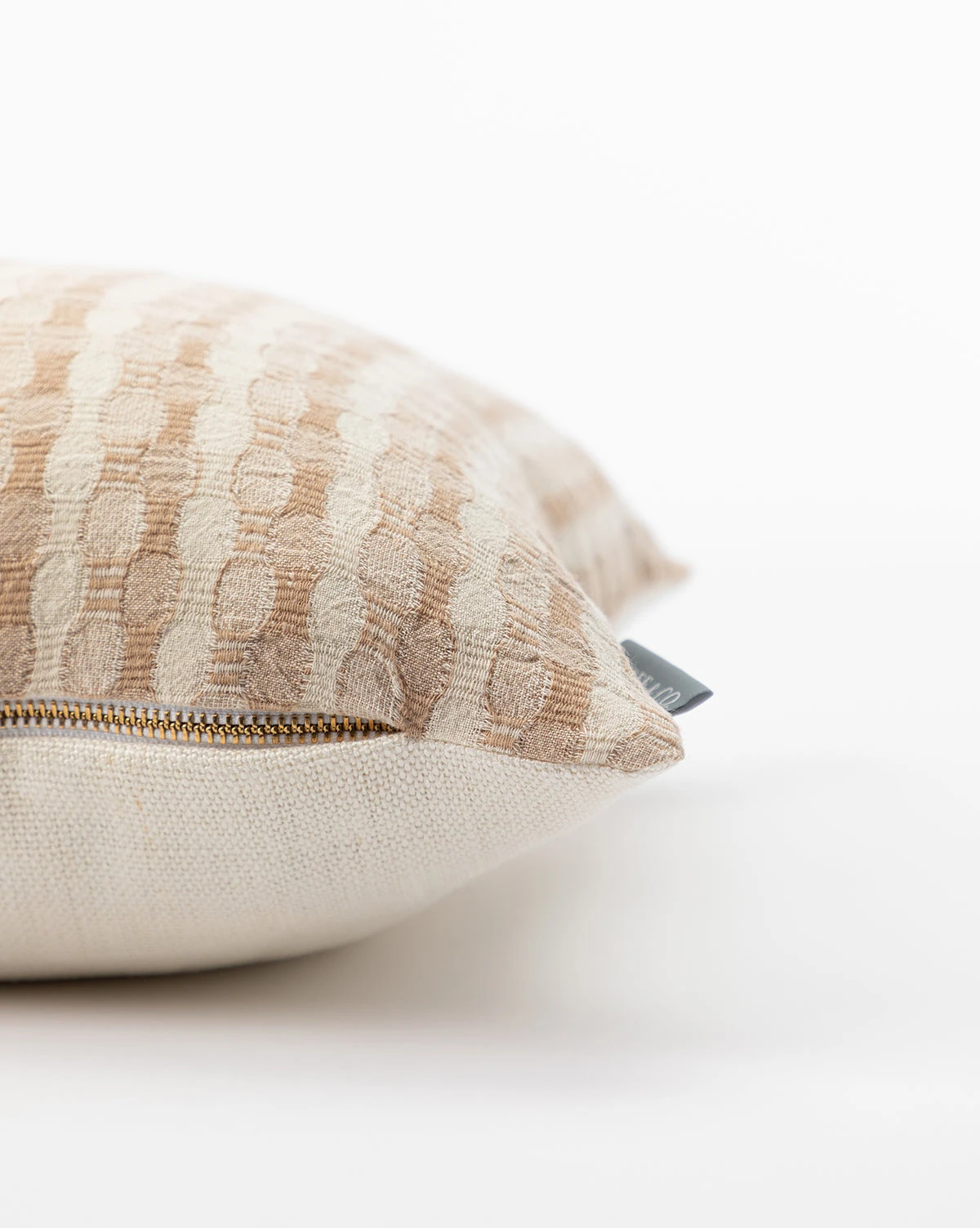 Crafted from linen, the Vintage Natural Patterned Pillow Cover No. 3 has a simple, tonal palette of neutral colors in an intricate striped pattern. As part of our Vintage Collection, this pillow cover was hand-selected by our team for the character, heirloom quality, and beauty it will add to the home.Â